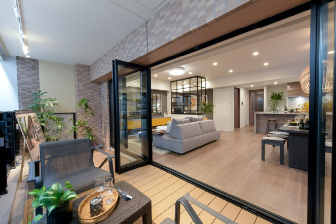 3LDKを2LDKに間取り変更されたというT邸。「リビングダイニングは18畳位の広さになります。開口部に壁がほとんどないので、オープンエアスペースとつなげれば大空間が生まれます。ウッド調デッキ部分にテーブルセットを置いて、みんなで集まったら楽しいでしょうね。」引越しに向けて、徐々に準備も始められているそうです。「リビングに大きいソファや大きいテレビを新調しようと思っています。個室の1部屋は寝室、もう1部屋は納戸兼書斎にする予定。マンション共用部に3席あるワークスペースも使ってみたいですね。」ご入居を楽しみにされるTご夫妻。快適なプレディアライフはもうすぐです。