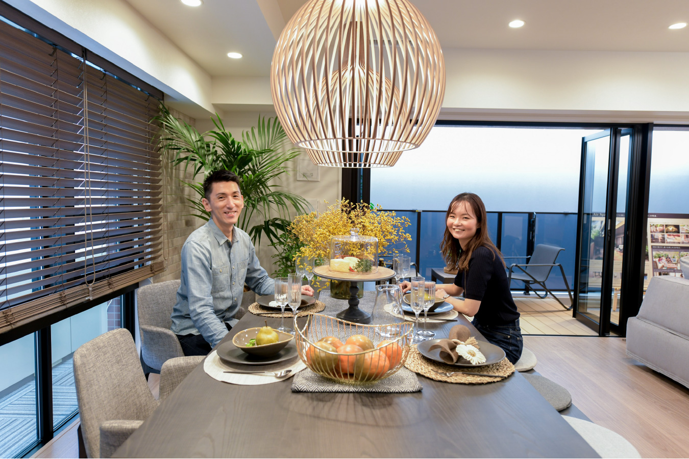 ご夫妻がこの物件を気に入られた理由は、まず立地の良さ。「この辺りは横浜の中でも環境が良いエリアですが、その中でも特にこの物件周辺は、高い建物が少なく閑静だと感じました。その上、すぐ近くに『根岸森林公園』もあります。『根岸森林公園』がこんなに大きな公園とは知らなかったので、見学した時は驚きました。引越ししたら、朝早くから散歩やランニングがしたいですね。桜も綺麗らしいので楽しみです。」モデルルームでは、ウッド調デッキのオープンエアスペース、天然御影石カウンターの開放感あふれるオープンキッチン、豊富な収納スペースなどが特に気に入られたそうです。