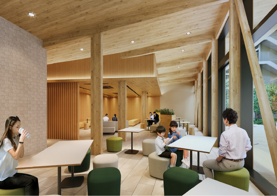 近年、地球環境への負荷低減、森林資源の保全、林業や木材産業の活性化などのために、建築への木材利用を推進する施策がさまざまに講じられています。プレディアではマンション共用部に木造共用棟を採用するなど、「持続可能な社会づくり」に貢献してまいります。