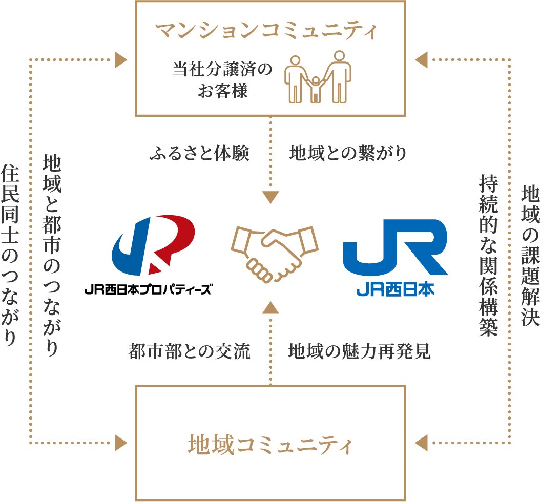 地域コミュニティとマンションコミュニティが地域活動を通じた関わりしろを持ち、地域と都市を相互に行き来する関係を創出することで、「地域コミュニティの活性化」を目指す取り組みを行っています。