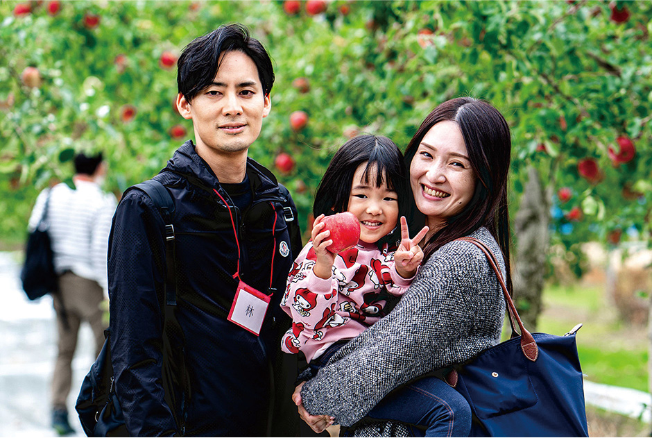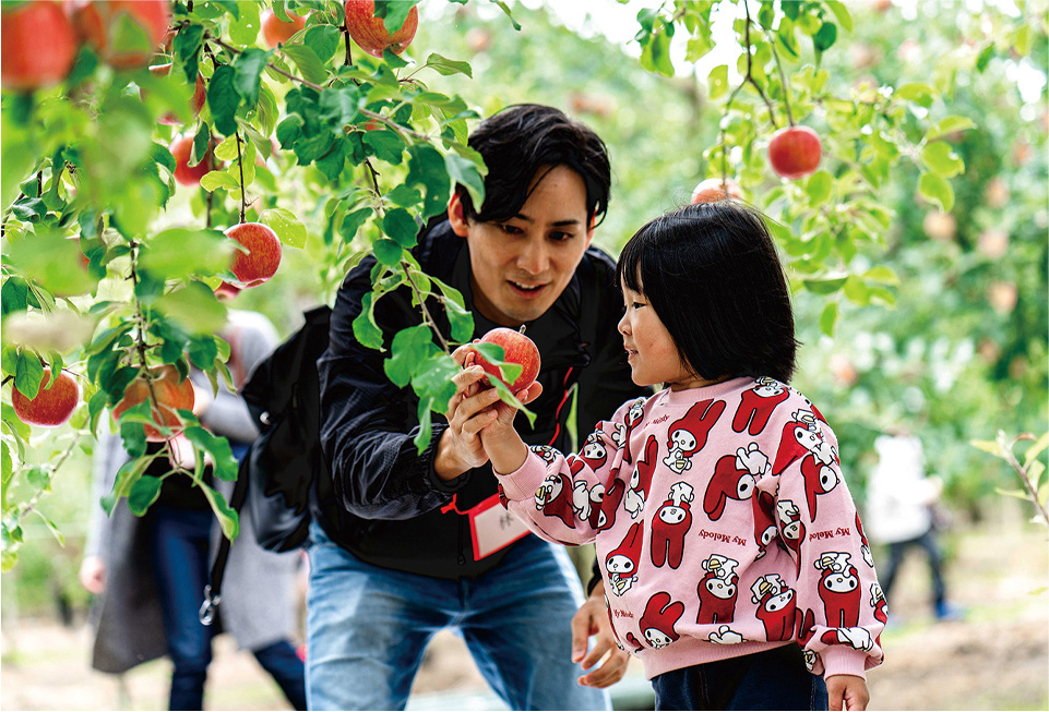 高野りんごは、樹になっている状態で完熟になるまで待ってから収穫する「樹上完熟」。そして農家直売にこだわった販売方法で、市場には出回らないため、「幻のりんご」と呼ばれています。そんな幻のりんごを収穫、もぎたてを味わえば、じゅわっと滲み出る甘い蜜に子どもたちも思わず笑顔に。