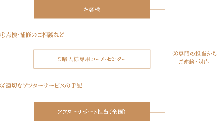 お住いの快適な住み心地を維持していただくためには、信頼されるアフター対応やサポート体制が、何よりも大切だと考えています。