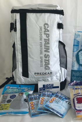 各住戸へ防災リュックをお渡ししています。難熱加工が施されたリュックサックに防災グッズが備えられています。