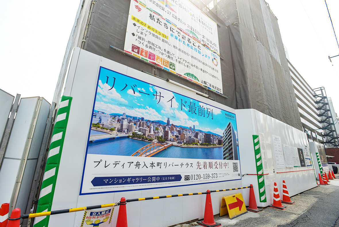 「舟入本町」電停徒歩5分の場所に建設中の「プレディア舟入本町リバーテラス」は、本川リバーサイドの分譲マンションです。プライベート性が高い1フロア3邸設計で、全邸がリバービュー。川側に遊歩道や道路がないため、約120m離れた対岸まで本川の悠々たる眺めを独占できます。コンビニやクリニックモールも徒歩2分圏内。利便性も抜群です。
