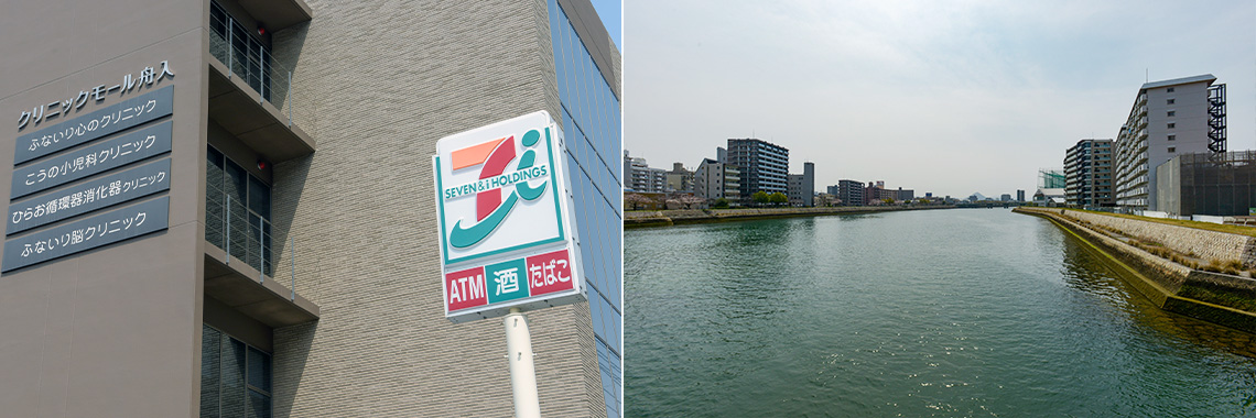 天満川沿いにある「広島市立 舟入市民病院」は、125年を超える歴史を持つ病院です。小児科診療が充実していることで知られ、市民の多くの方々から親しまれ、頼りにされています。有名な病院が数多く点在する舟入エリア。西広島バイパス沿いの「浜脇整形外科リハビリセンター」もその一つ。専門分野に精通した医師による診療に定評があります。