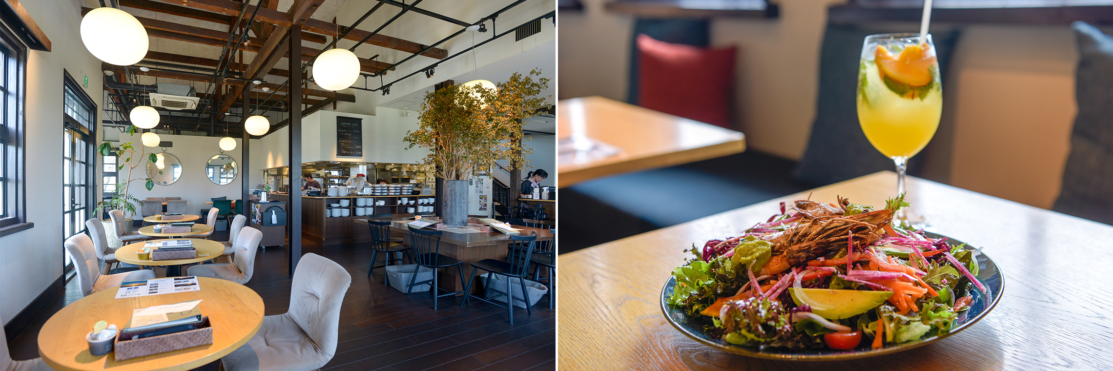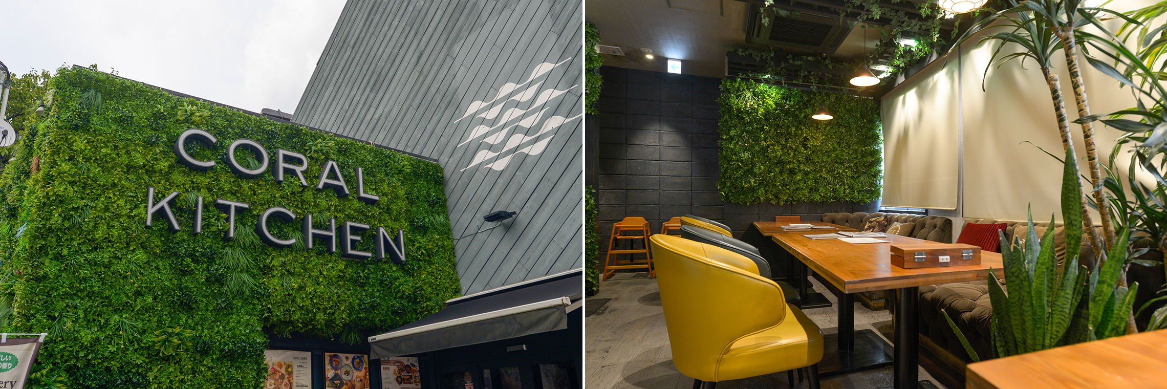 現地周辺には、魅力的なレストランやカフェもたくさんあります。「コーラルキッチン」は、外観も店内もグリーンに囲まれた都会のオアシスのようなレストラン。豊富なメニューで、様々なシーンで幅広く利用できます。ランチは、店内のパン工房で焼上げた自家製焼立てパンが食べ放題。目の前で生クリームをたっぷりとかけてくれるシフォンケーキも圧巻です。