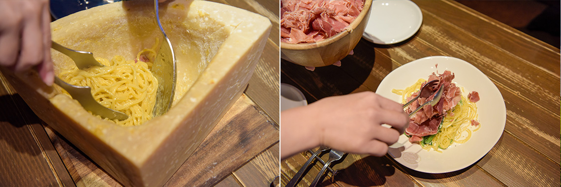 「バーロブロイ」近くの「イタリアンキッチンバンサン」も、テレビで紹介された人気のレストランです。生ハムやシラスの乗せ放題パスタや、チーズの器で絡める熱々のカルボナーラ、いちごがゴロゴロ入ったドリンクなど、豪快なメニューの数々に驚くお客様も多いはず。キッズメニューやキッズスペースもあるので、お子様連れでも安心です。