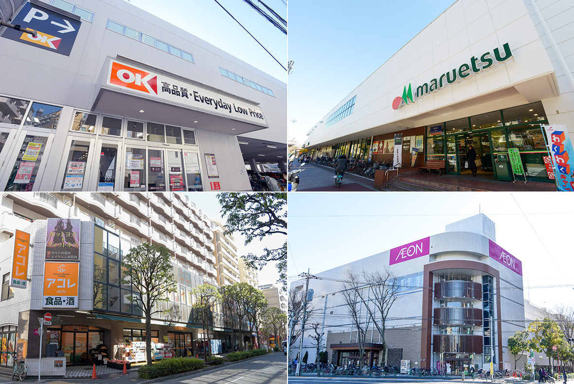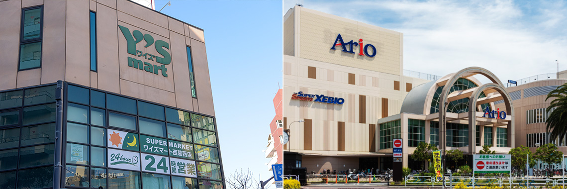 トレンディなお店だけでなく、「西葛西」駅周辺には日々の暮らしに欠かせない大型スーパーマーケットも数多く点在します。駅南側には「オーケー」「マルエツ」「アコレ」、駅北側には「イオン」や駅前24時間営業の「ワイズマート」。車や自転車を使って少し足を伸ばせば、エリア最大級のショッピングモール「アリオ葛西」も気軽に利用できます。